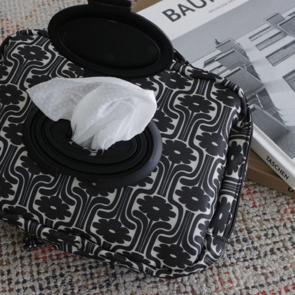 おしり拭きをサッと取り出せるフタ付きで、